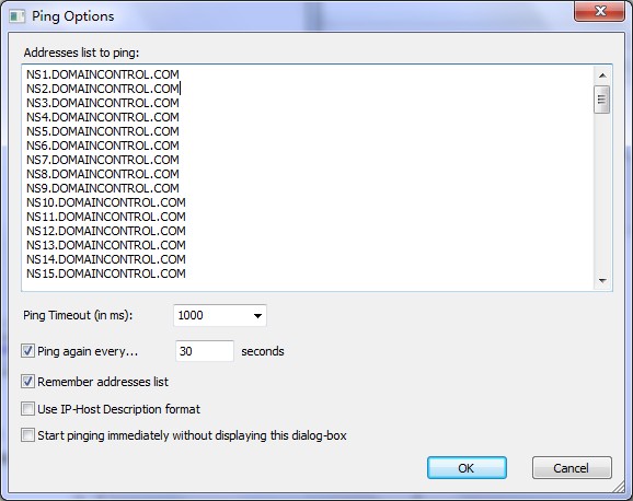 3,打开PingInfoView软件,在弹出的Ping Options窗口中输入dns服务器地址,一行一个。