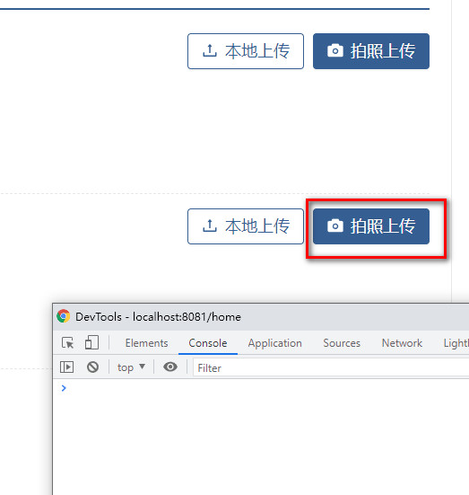 3. 第三步:刷新页面,点击拍照上传,然后查看console有无输出错误信息