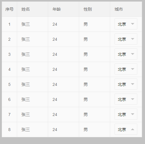 项目中经常用到table和select的情况,每次都会遇到select显示不全或者隐藏的问题,今天记录下解决方案: