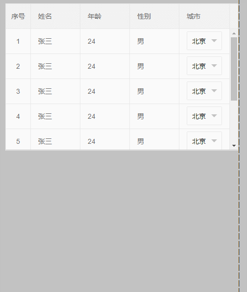 3、如果table是固定高度 需要内部滚动呢,单纯的设置overflow: visible;效果如下: