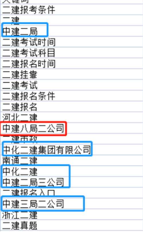 这里以建造师行业(备注:这个行业笔者也是不熟悉的,简单作为测试)根据指数获取初步的核心关键词4个:建造师、一建、二建、二级建造师。再根据核心关键词拓展,可以使用拉取周边的关键词(根据经验即可),剔除一些不相关的指数词并做好去重。