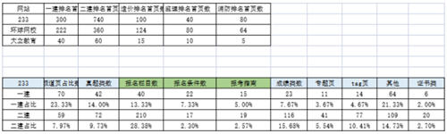 首页词量、流量来源、栏目数量、栏目设置、栏目更新量数据、栏目收录率;分析行业网站关键词的关键词属性,对于排名首页的属于该关键词的关键词做初步归类将下载好的数据批量筛选关键词排名首页词量,非垂直类站点通过核心关键词筛选出属于首页的关键词情况,统计排入首页的关键词情况。