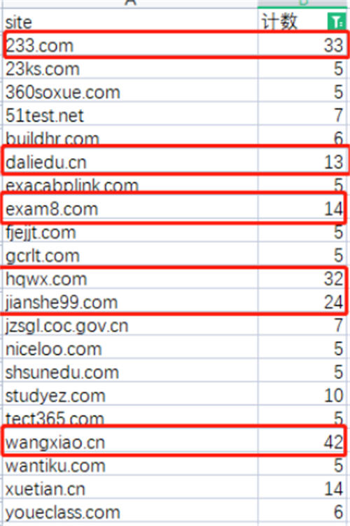 第3步,可以筛选出权重>=2的网站记录url与网站名称,结合python脚本抓取的覆盖率行业网站数据,分析出做站群的行业网站、是否是建造师垂直站点、综合性站点,筛选有关业务的站点,排除一些广告联盟或者建造师是边缘业务的站点。