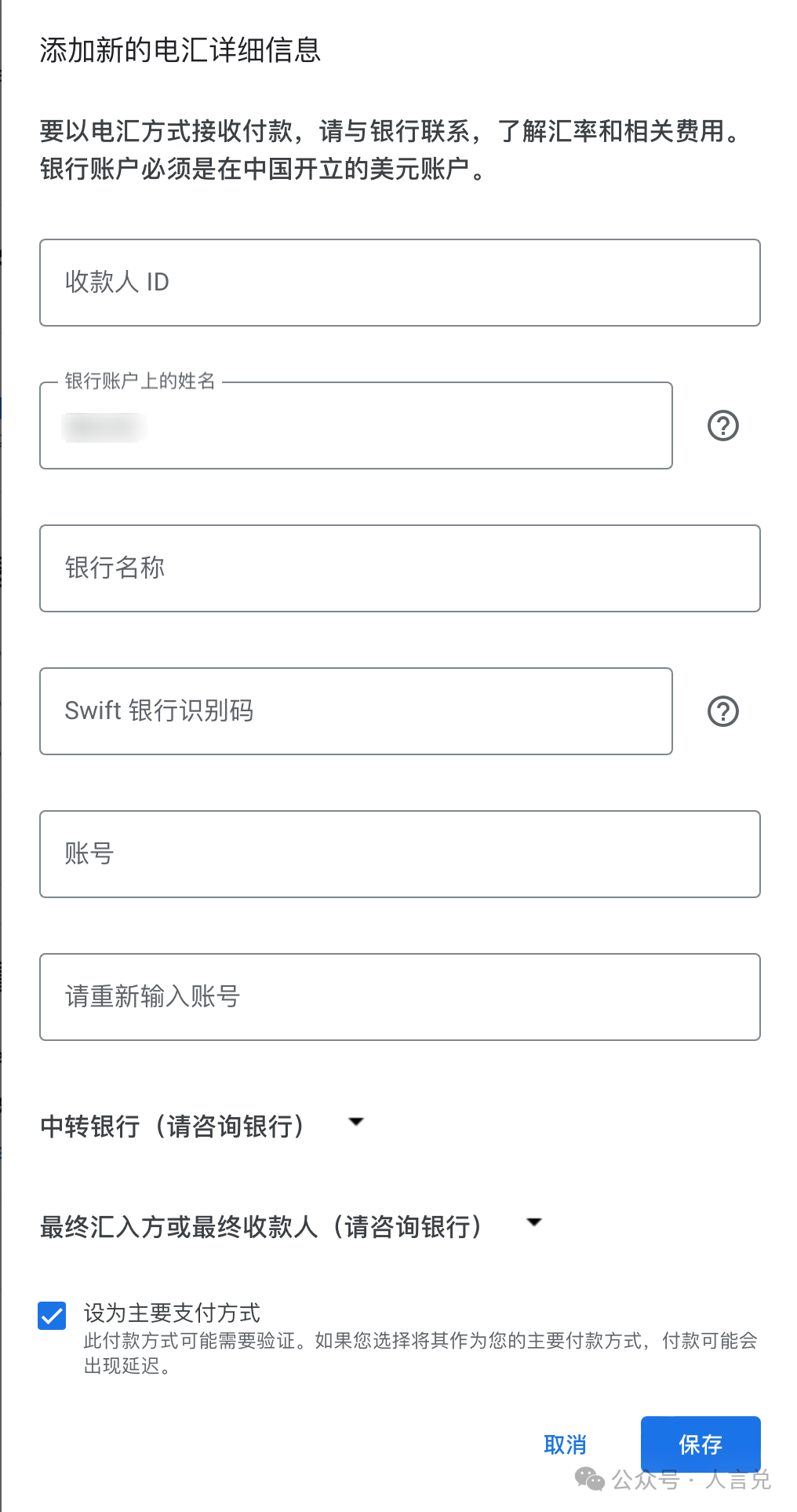 - 最终汇入方或最终收款人:不填