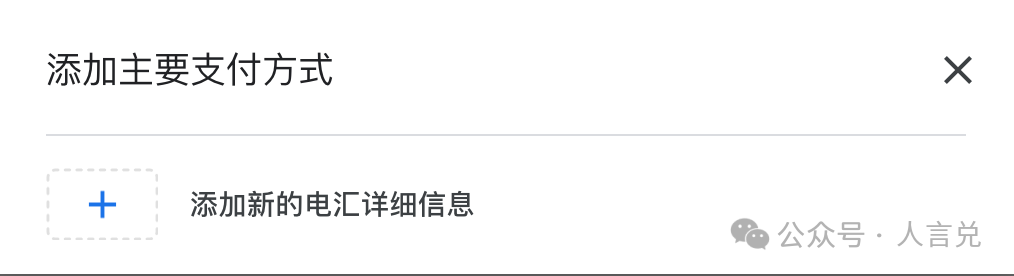 只支持电汇这一种形式,点击「+」出现表单: