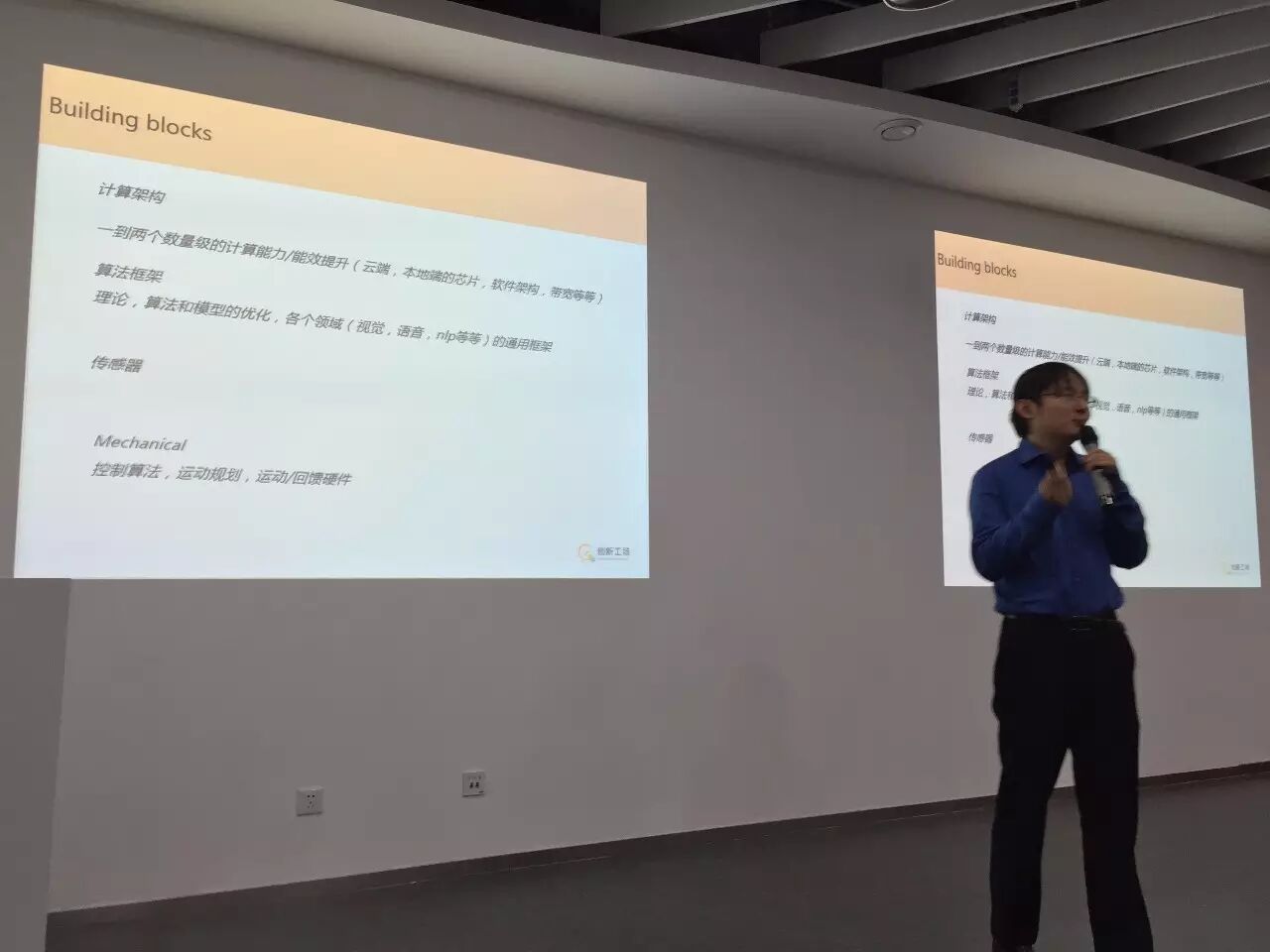 所以普及的话还是需要计算架构要有突破,把现在的计算效益和计算能耗品提高一到两个数量级,这里面有很多事可以做,可能就新的芯片公司的机会,他们可能会出现新的英特尔,新的IBM,新的高通,他们是做芯片的,可以做运算能力更快,更节能的芯片。然后也有可能做新的软件上的计算架构,比如模型压缩,比如很多软件算法公司的机会。