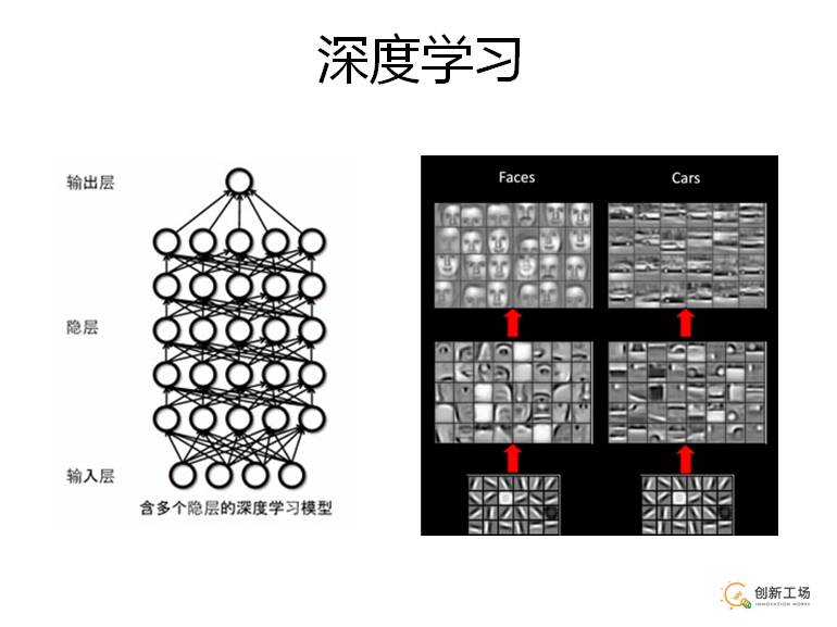 谷歌当年曾经做过一个实验,他用了九层的神经网络,然后把大量没有任何预处理的图片和视频扔进去,进行训练之后,在没有任何人告诉的情况下形成了猫的概念。