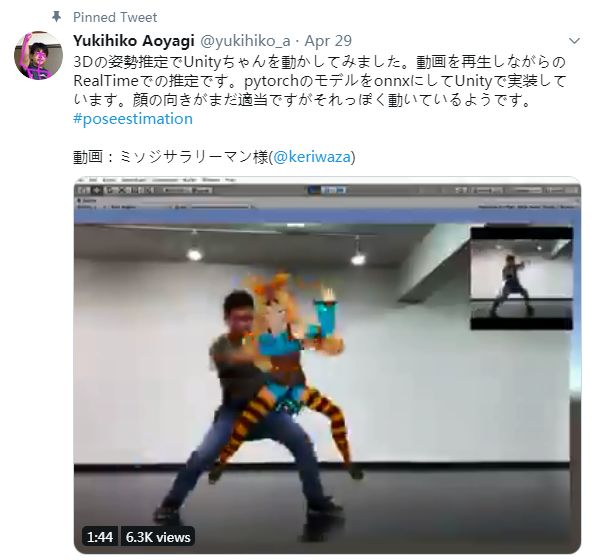 来源: 日本中二少年教你用姿势估计把自己变成3D人物,动作实时同步,iOS上也能实现
