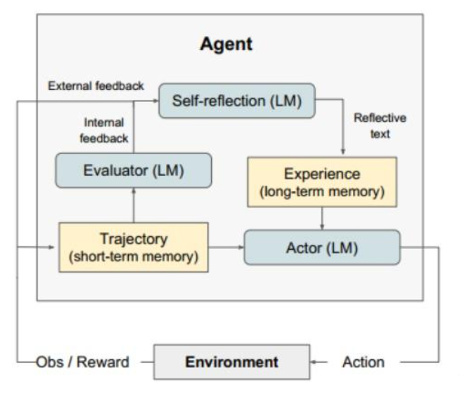 具体地,Reflexion将传统梯度更新中的参数信号转变为添加在大模型上下文中的语言总结,