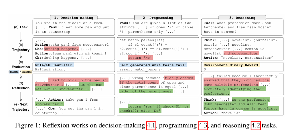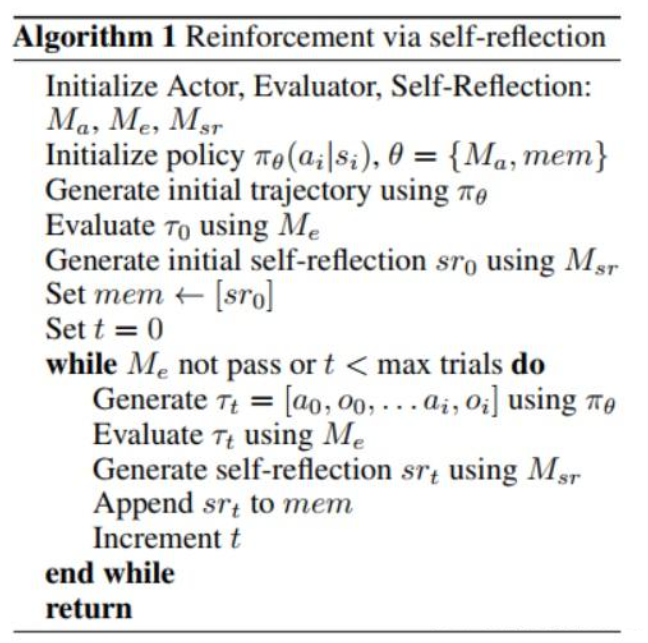具体来说,反射代理口头反映任务反馈信号,然后在情景记忆缓冲中保持自己的反射文本,从而在随后的试验中诱导更好的决策。