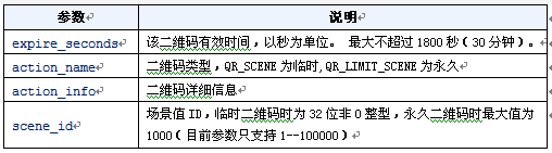 每次创建二维码ticket需要提供一个开发者自行设定的参数(scene_id),分别介绍临时二维码和永久二维码的创建二维码ticket过程。