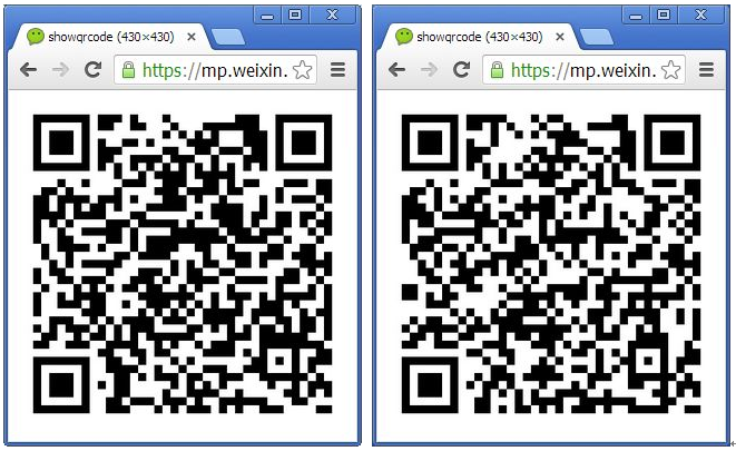 目前有2种类型的二维码,分别是临时二维码和永久二维码,前者有过期时间,最大为1800秒,但能够生成较多数量,后者无过期时间,数量较少(目前参数只支持1–100000)。两种二维码分别适用于帐号绑定、用户来源统计等场景。