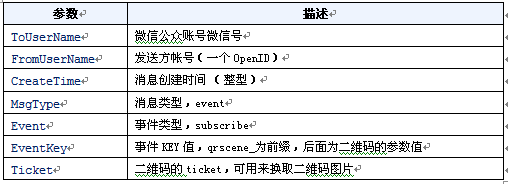 为了满足用户渠道推广分析的需要,公众平台提供了生成带参数二维码的接口。使用该接口可以获得多个带不同场景值的二维码,用户扫描后,公众号可以接收到事件推送。