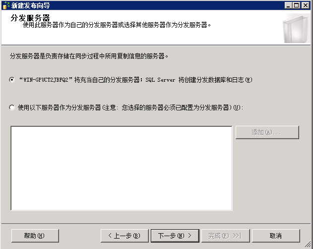 16.选择运行分发代理的位置,勾选第一个,如果选择第二个也需要开启从服务器SQL Server代理服务