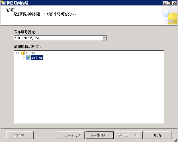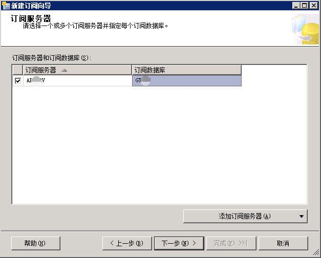 17.选择订阅服务器(从服务器),订阅数据库需要同步的数据库(主服务器和从服务器热备份的数据库结构需要一致)
