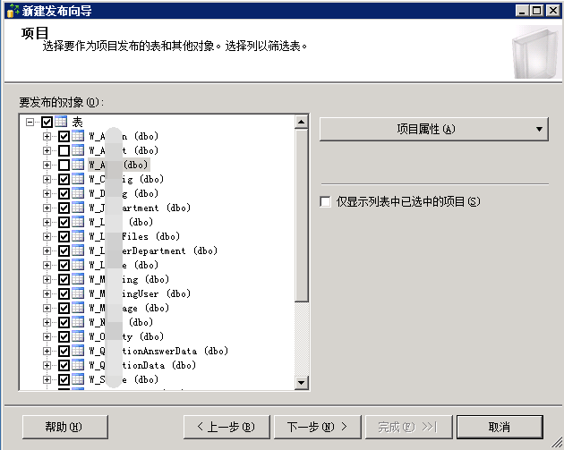 8.选择需要发布的表(需要同步到从服务器数据库表的数据)