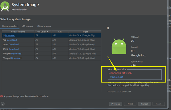 刚搭建好环境,当我想打开Android Studio 自带的模拟器时,出现如下: