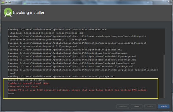 再查看,说在C:\Users\Administrator\AppData\Local\Android\Sdk\extras\intel 里面有intellhaxm-android.exe,需要手动安装。