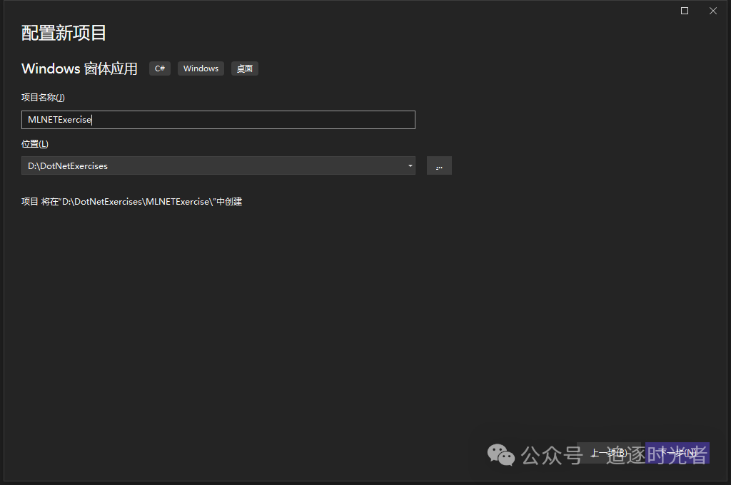 创建一个名为:MLNETExercise的.NET8 WinForms应用。