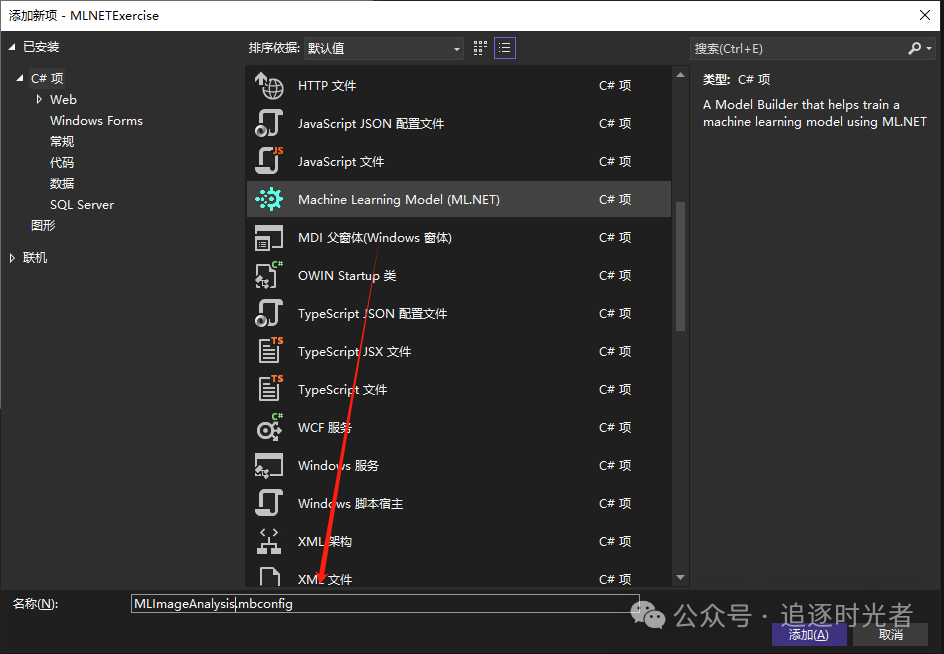 ML.NET Model Builder 组件介绍:提供易于理解的可视界面,用于在 Visual Studio 内生成、训练和部署自定义机器学习模型。