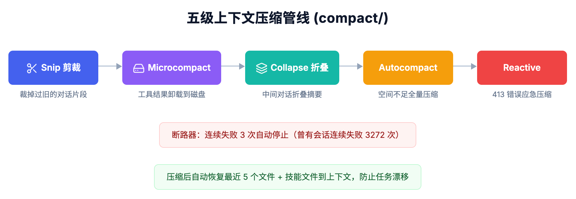 // 1. 上下文压缩(防止 token 爆炸)