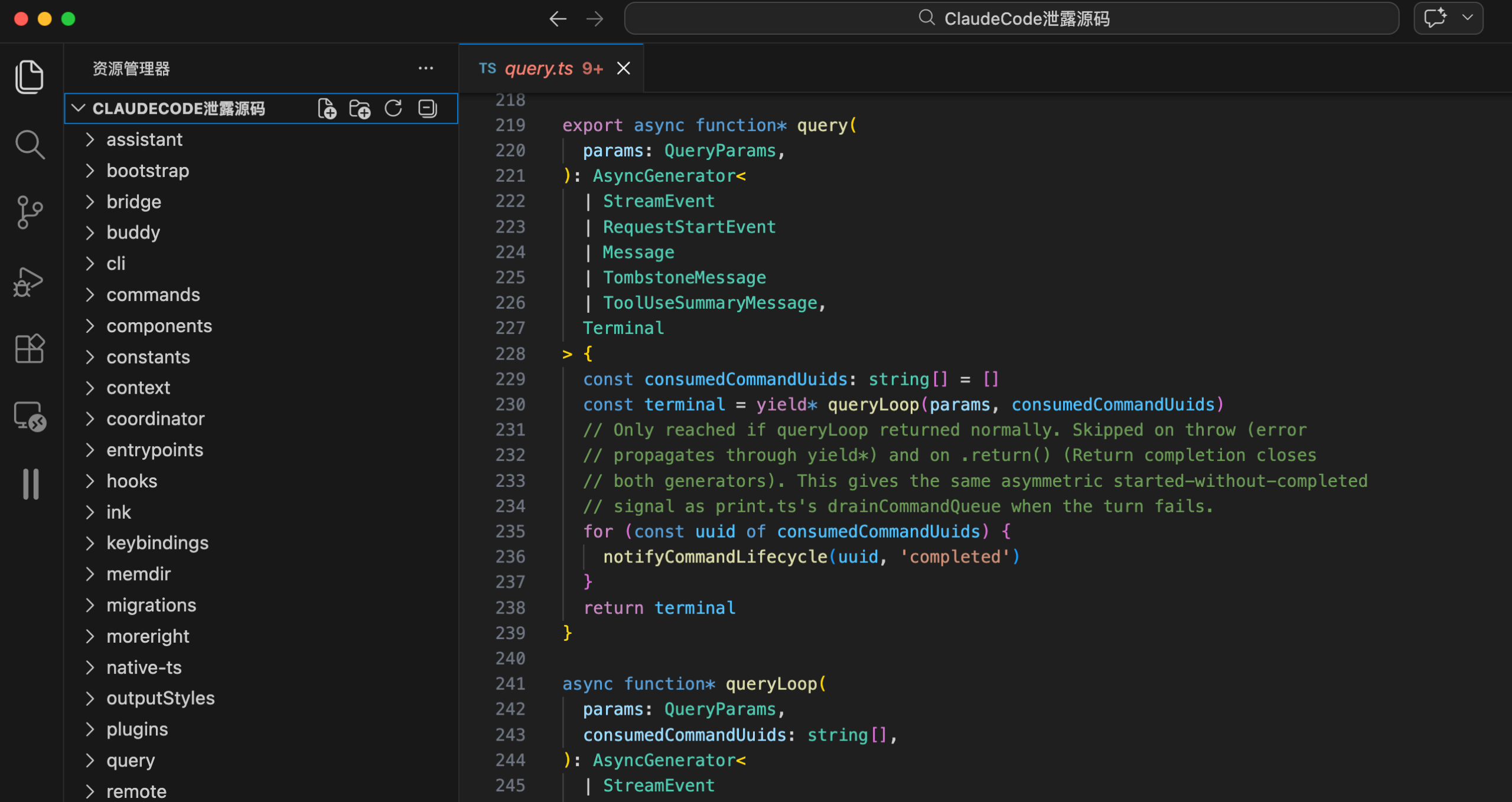 async function* queryLoop(params: QueryParams, consumedCommandUuids: string[]) {