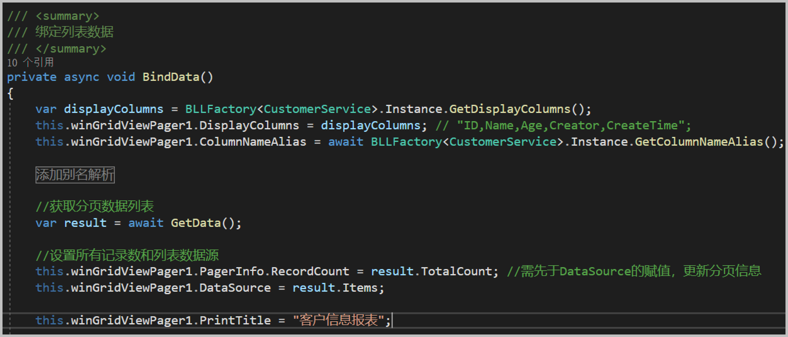 var result = await BLLFactory<CustomerService>.Instance.GetListAsync(pagerDto);
