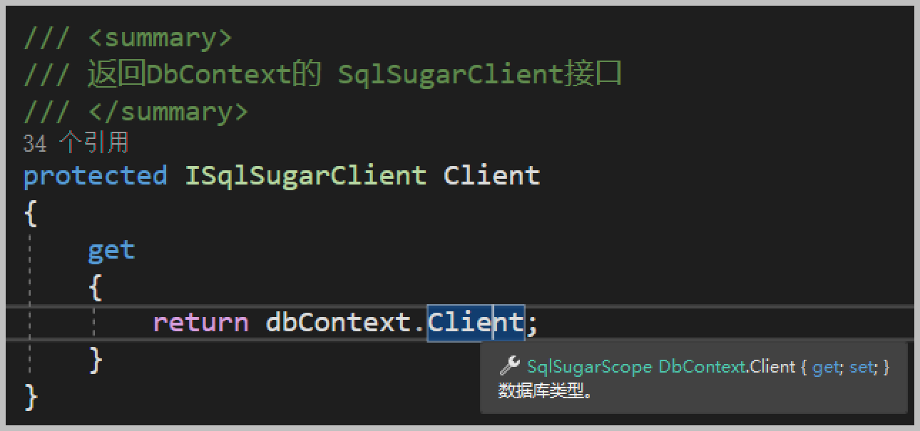 其中的Client对象是DbContext对象实例的Client属性,如下图所示。