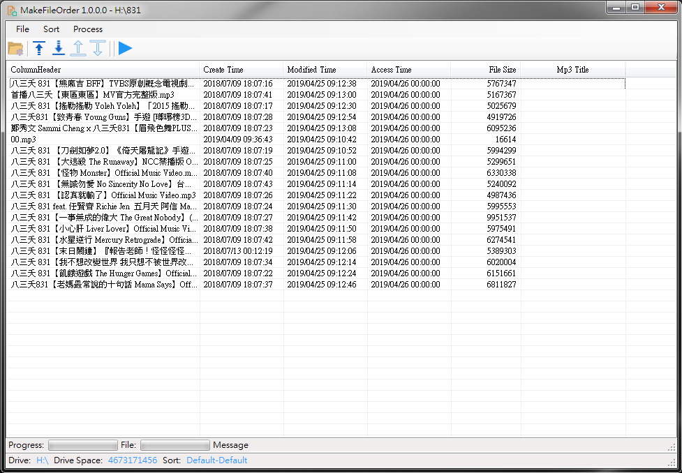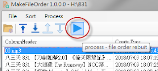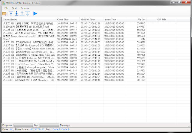 最近遇到某些音樂播放器,由其是SONY的車用音響,都出現了這個問題,就是它根本不照我們放置檔案的順序或是其他排序方式(時間)去撥放。而這支程式就是用來重建他的檔案順序用的。