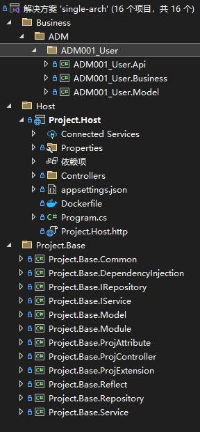 ,一个项目就这么成型了。上面的项目有一个非常清晰的特点,就是按需开发,不需要去可以定义业务相关的公共的模块,有就有没就没。这项目看起来没有什么公共框架,就是一个项目。当然这样效率性能也是最高的,不需要过多的包装一层又一层的公共代码。