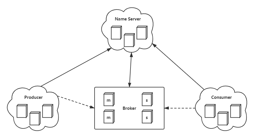 RocketMQ 的核心组件,绝大部分工作都在 Broker 中完成,接收请求,处理消费,消息持久化等;