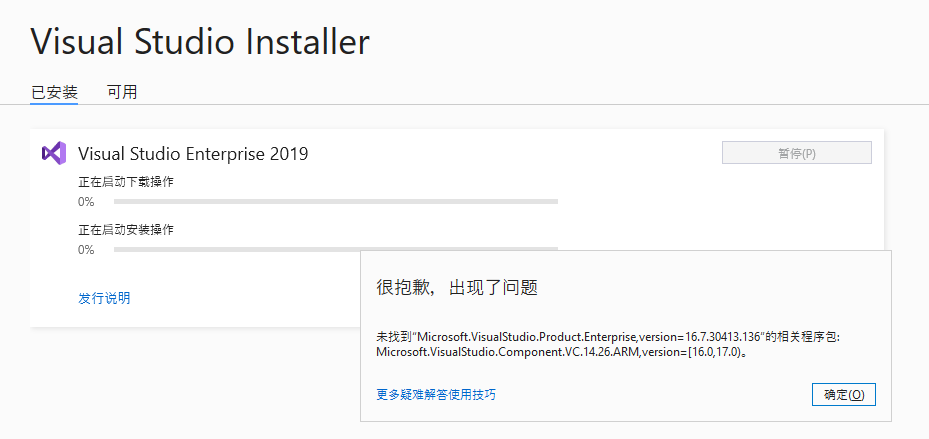 我本地已经安装了visual studio 2019 本来准备通过更新修改vs方式测试安装的。但是我本地环境vs有问题,一直报错。