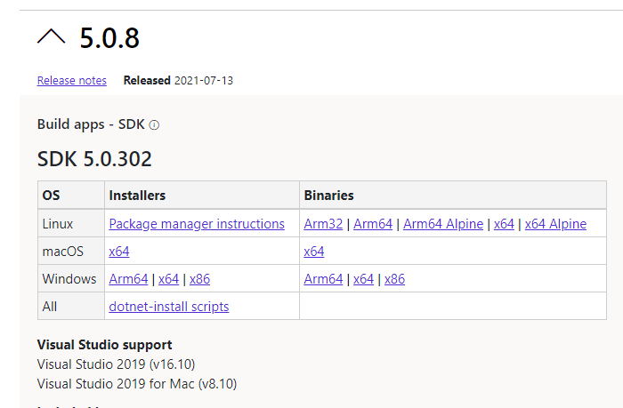 对于.net 5来说则最少需要 visual studio 2019 版本 16.8 。