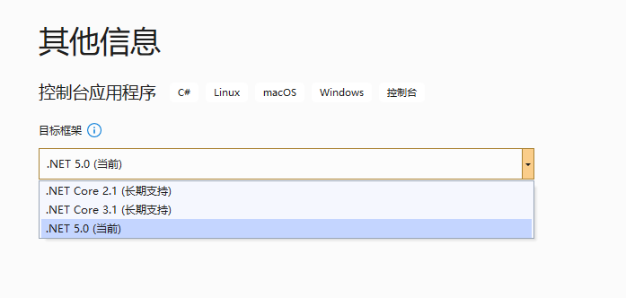 但是我们选了.net core 后可以选择我们的目标框架,如果装了多个版本。