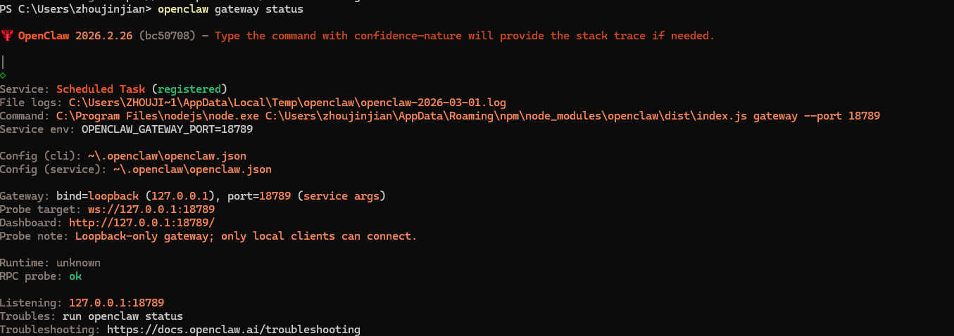 openclaw gateway --port 18789 --verbose # 前台运行方便看日志