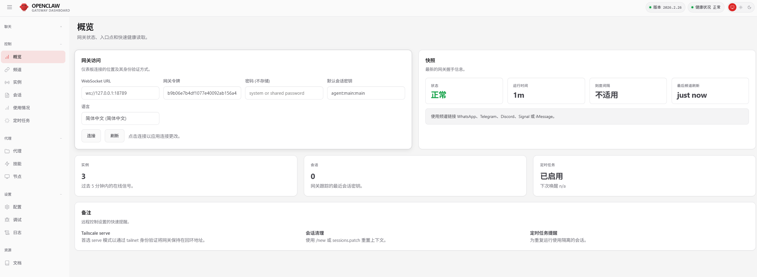 浏览器打开http://你的服务器IP:18789 可查看控制面板。