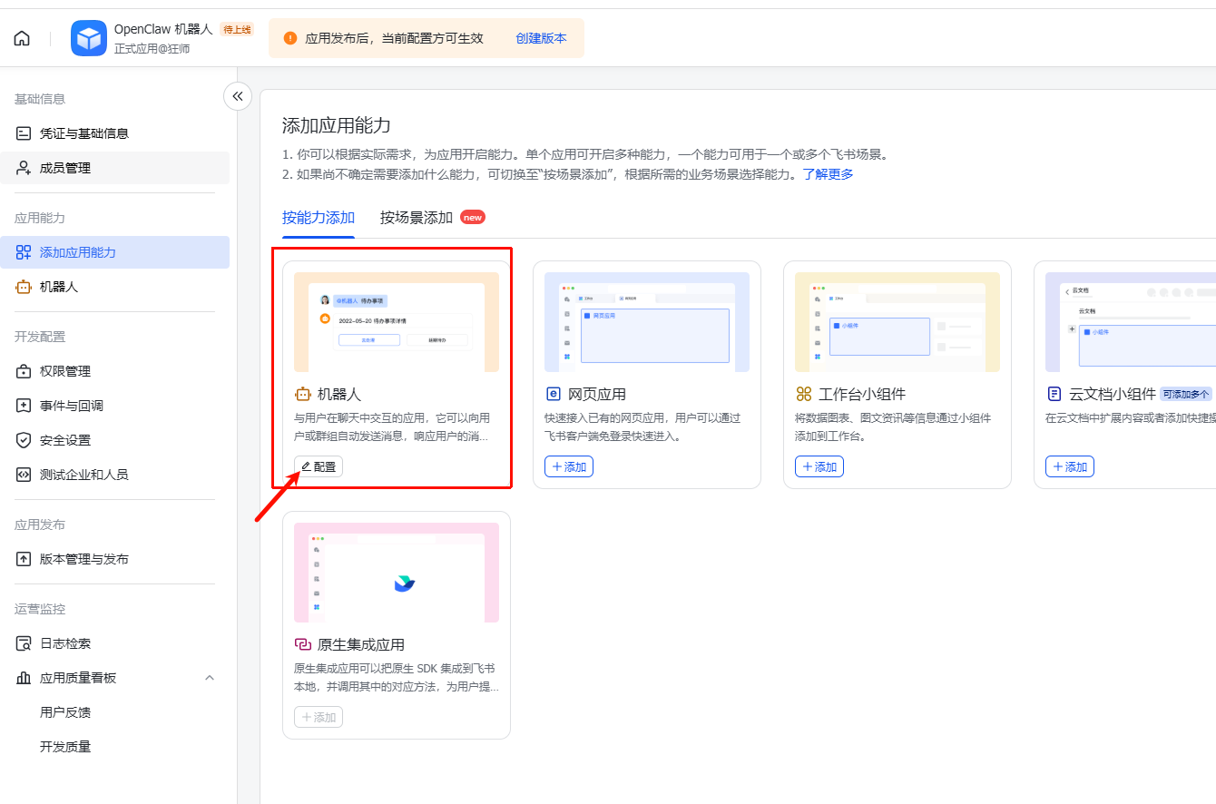 实测经验:如果还没先发布应用就直接开启"长连接订阅",通常会持续失败。