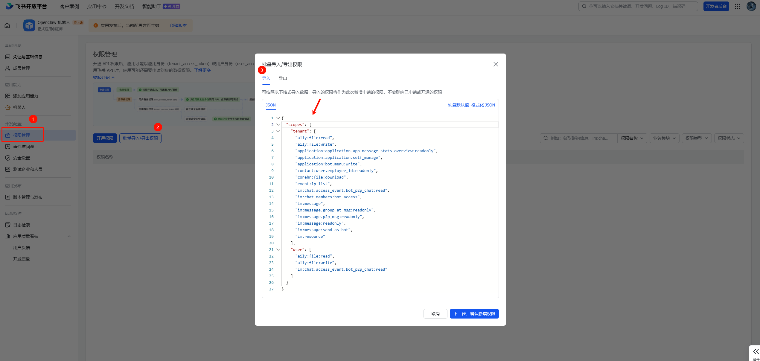 | im:message.p2p_msg:readonly | 读取私聊消息 |