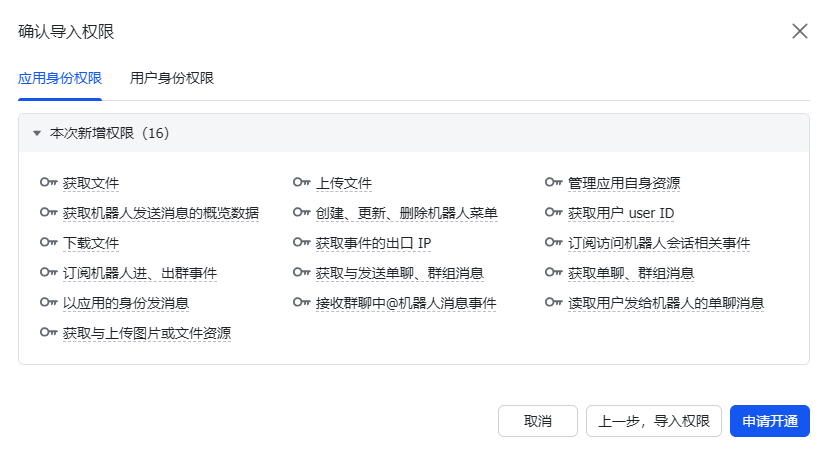 | im:message:send_as_bot | 以机器人身份发送消息 |