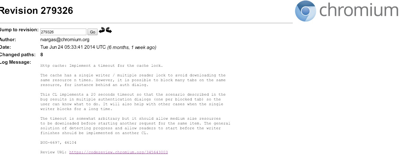 于是Chromium的开发者们选择了后者简单的实现。也就是Issue 345643003: Http cache: Implement a timeout for the cache lock 这个提交里的实现。