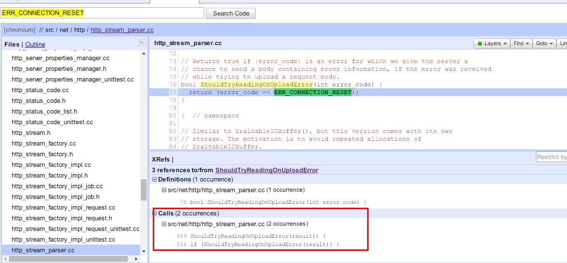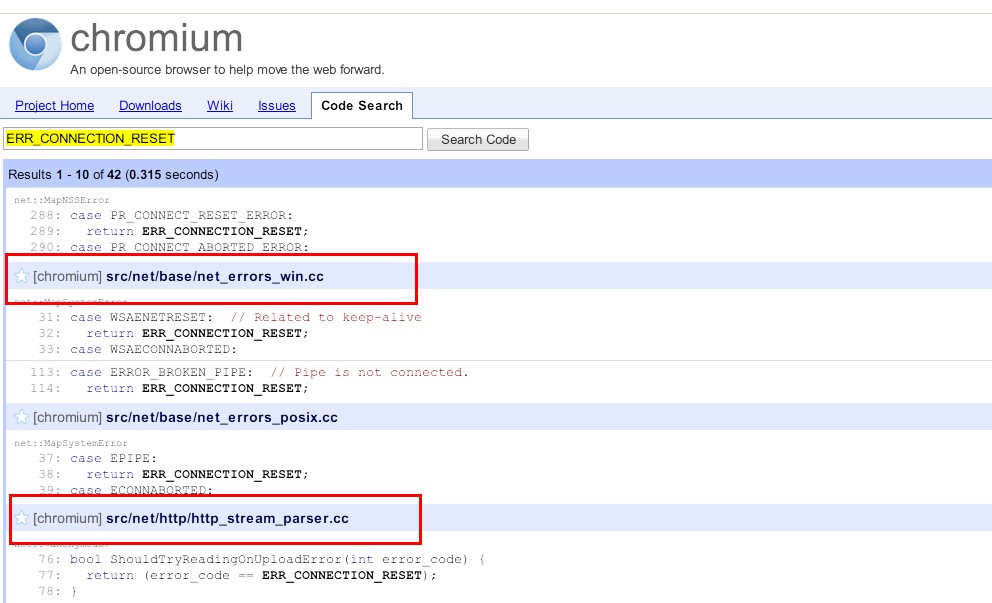 #11 ERR_CONNECTION_RESET 的Chromium 源码