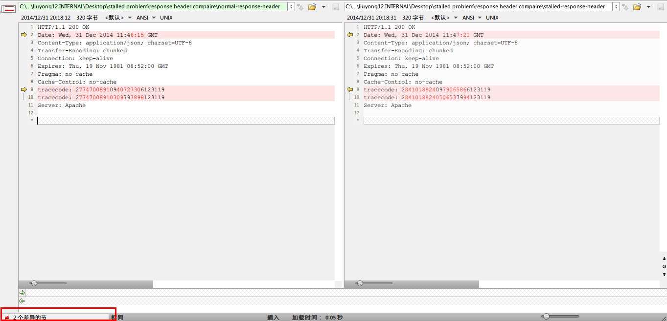 请求头的对比已丢失,但除了时间外,其余无差别。