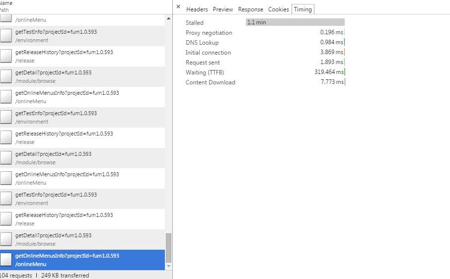 可以看到Stalled了1分多钟。神奇的是竟然不报超时错误而是成功返回了。