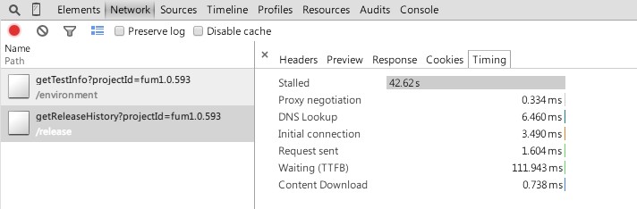 Pending了很久,从请求的时间线来看,体现在Stalled上。