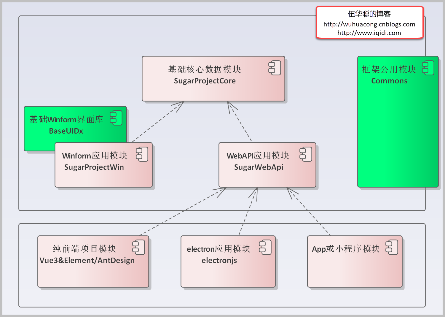 1)其中一些常用的类库,以及SQLSugar框架的基类放在框架公用模块里面。