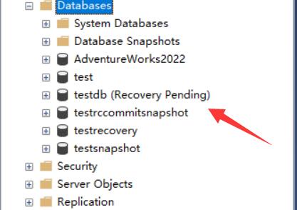 数据库停服后,将testdb数据库 的ldf事务日志文件改名或者移到其他路径,重新启动SQL Server 服务,可以看到,testdb 数据库处于“恢复挂起”状态。