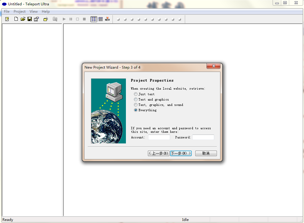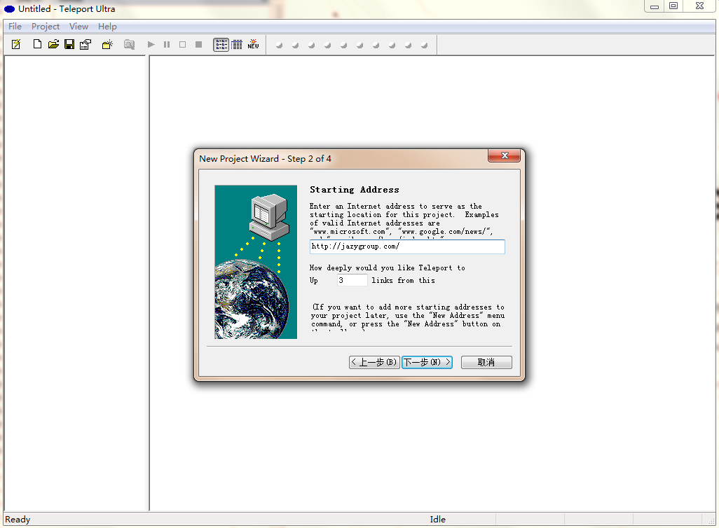 3、然后在输入框输入你要扒的网站的地址,点击下一步