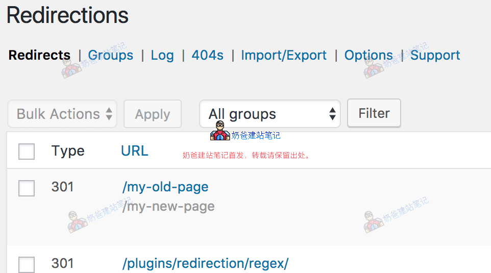 WordPress做301跳转的话也可以使用插件帮忙,例如Redirection