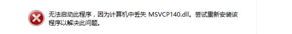 ②:无法启动此程序,因为计算机中丢失MSVCP140.dll;