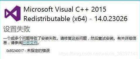 3、VC++2015 设置失败,一个或多个问题导致了安装失败……..